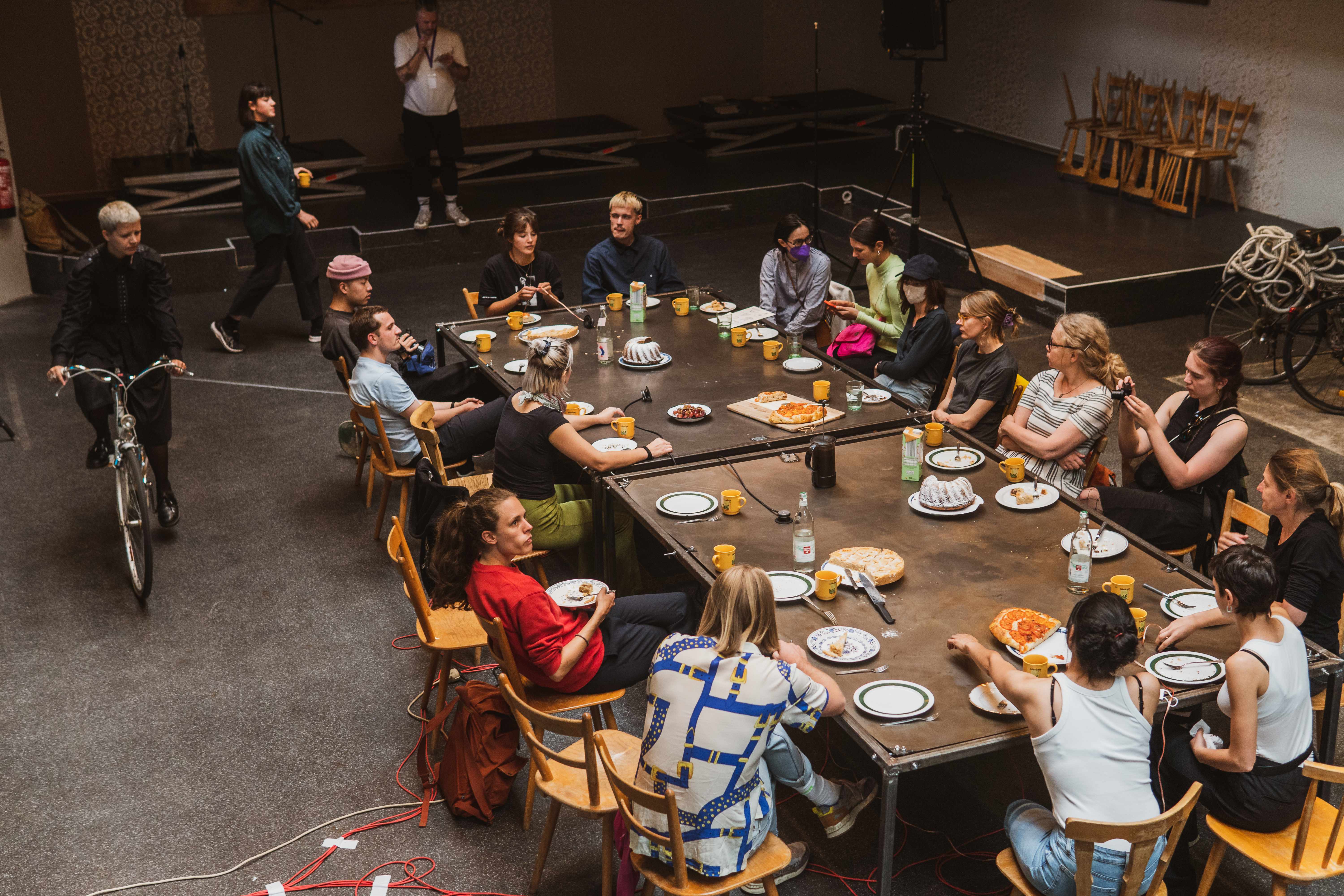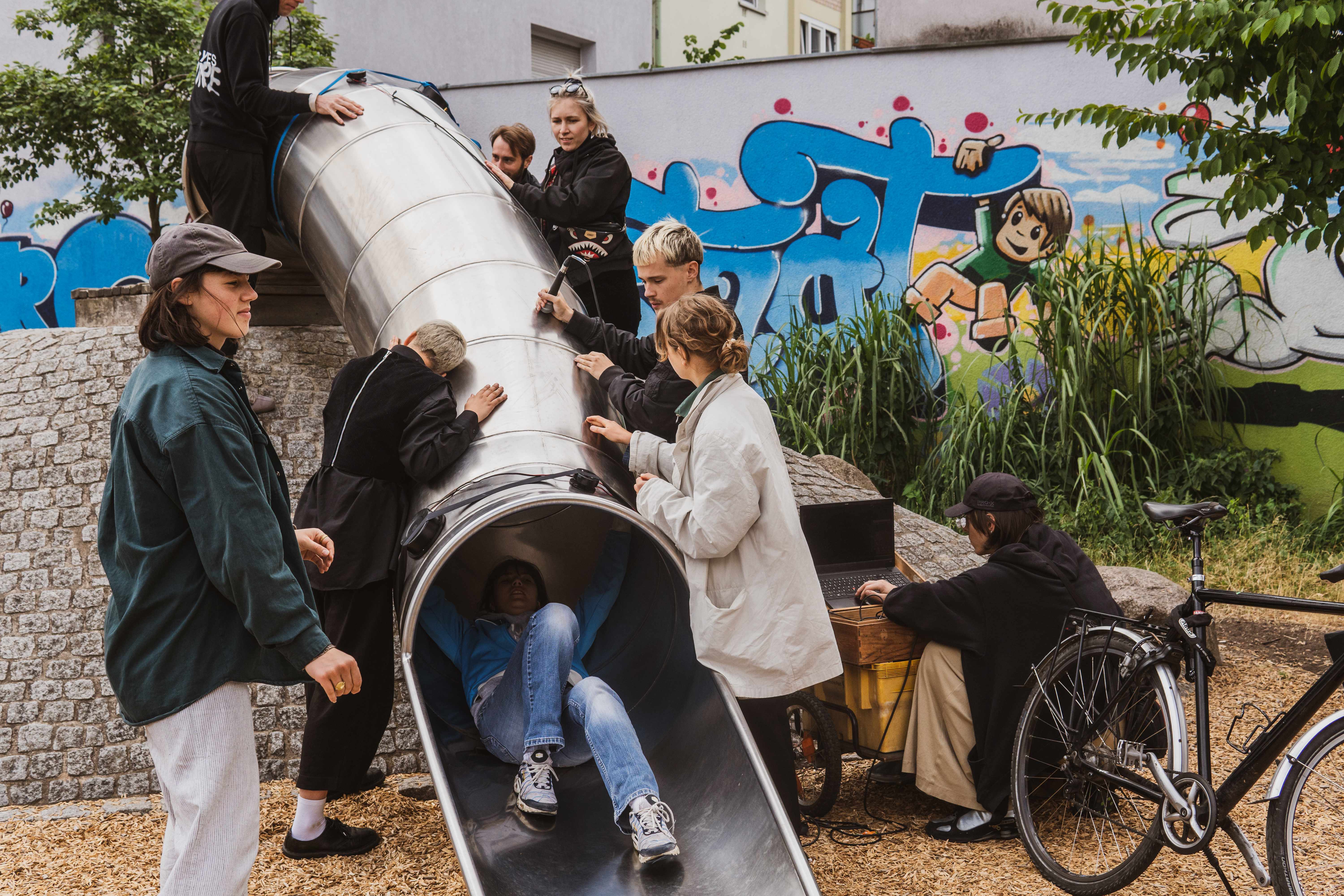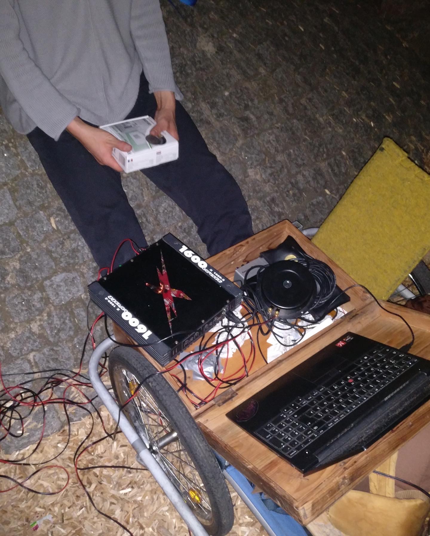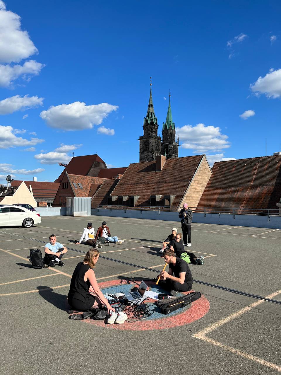 Im Rahmen des Festivals Musikinstallationen widmet sich DAF den Eigenschaften und Wirkungen von nomadischem Klang im öffentlichen Raum. In Zusammenarbeit mit der “Interpret*innenkammer”, einem interdisziplinären Kollektiv von Musiker*innen, Komponist*innen, Künstler*innen und Designer*innen aus Bremen, erzeugt DAF in Form von Streifzügen eine Bewegung durch Nürnberg. Ein Studio mobilisiert und erkundet die Stadt, sucht Nicht-Orte auf, campiert an infrastrukturellen Knotenpunkten und fügt temporäre Architekturen hinzu. Dabei nimmt der Klang an Fahrt auf, verteilt sich kompositorisch zu unterschiedlichen Tageszeiten im Stadtraum und verdichtet sich an festen Haltepunkten zu Happenings und Interventionen. Die Fahrräder, die wegen ihrer Niederschwelligkeit ausgewählt wurden, tragen das Studio und werden zu beweglichen Klangskulpturen, die als Transportmittel, mobile Klangerzeuger, Abhör- und Aufnahmegeräte und Verstärker der städtischen Klanglandschaft dienen. Die Besucher sind eingeladen, sich den Streifzügen mit dem Fahrrad anzuschließen, an den Aufführungen teilzunehmen und anschließend mit uns bei einer gemeinsamen Mahlzeit in unserer Basis zusammenzukommen. Bei diesen Zusammenkünften wird sich über die gemeinsamen Erfahrungen unterhalten und ausgetauscht, um und so im Ausstellungsraum ein soziales Sediment dessen zu schaffen, was im öffentlichen Raum geschehen ist.